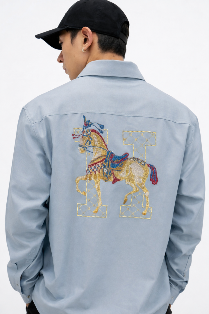 Sale Ami Sky Embroidery Logo Oxford Lycra Premium Shirt F3108-SK